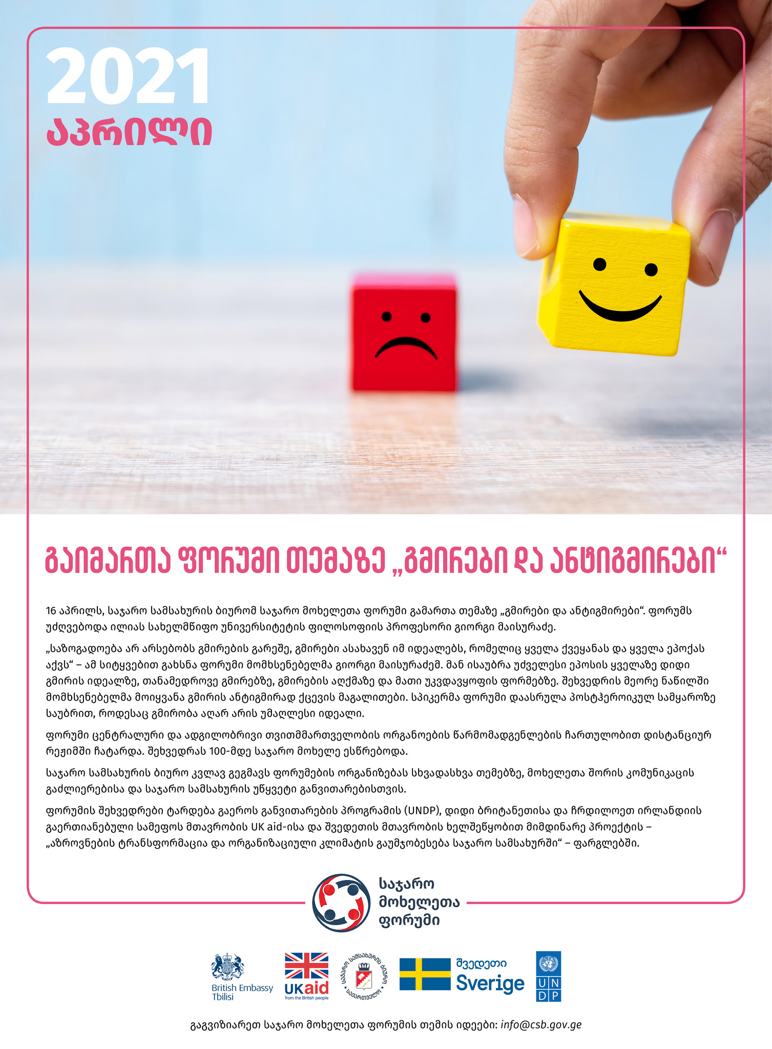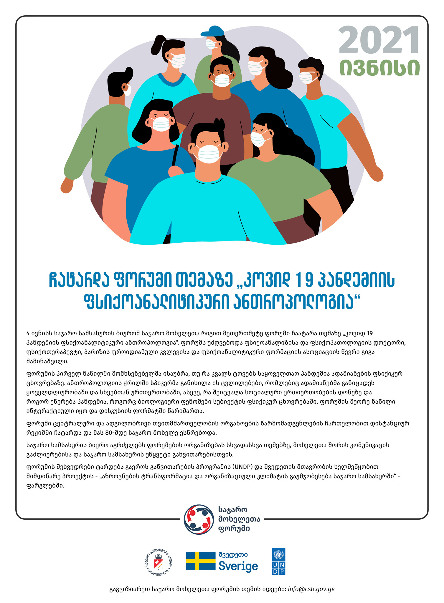 2019 წლიდან საჯარო სამსახურის ბიურომ 80 ფორუმს უმასპინძლა, რომლებსაც დაესწრო ცენტრალურ საჯარო დაწესებულებებსა და ადგილობრივ თვითმმართველობის ორგანოებში დასაქმებული 5000-ზე მეტი საჯარო მოხელე.